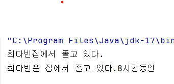 System.out.println(this.name + "은 집에서 졸고 있다." + hour + "시간동안");